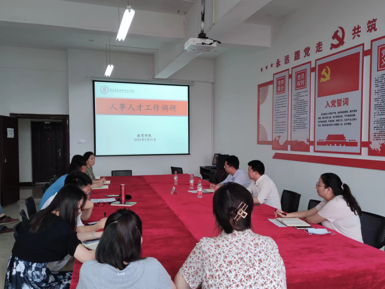 5月31日下午,校长助理郑行忠莅临我院开展人事人才工作专题调研并召开座谈会,校人力资源部有关领导陪同调研。教育学院院长娄全福、副院长张丽芳、各教研室主任、各科室负责人以及76net线路检测相关人员参加此次调研会议。