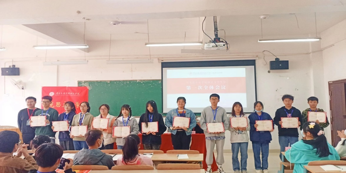 大会在全体成员起立奏唱《国歌》之后正式开始。会上,首先由贺璞书记发表讲话,对2022届新生加入学生会表示欢迎,并对学生会干部们的辛勤工作给予了充分肯定。接着,会议进行颁奖仪式,依次对优秀主席、优秀部门、优秀部长、星级个人颁发证书。然后,康柠老师进行发言,康柠老师对学生会各个部门的工作进行了评价,并提出了自己的期望。最后,全体起立奏唱《团歌》,本次76net线路检测团总支学生会第一次全体会议圆满结束。