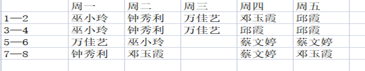 图一:76net线路检测教学管理工作人员查课值日表