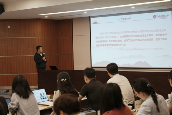 大会开始,江西财经大学76net线路检测副院长李德满对“社会主义革命和建设的开展”专题授课大纲进行了讲解,并以社会主义工商业改造为例重点展示了教学中采用的数据资料和案例。在简短的展示之后,大会进入专家点评阶段。来自天津师范大学的资深教师李朝阳教授进行了点评,认为李德满老师的授课具有思路清晰、史料丰富、备课充分等优点,但仍存在问题式教学的问题不够突出,不够有针对性的不足。随后,大会进入自由讨论时间,来自不同院校的十多位老师都发表了自己的见解,我院公共政治理论课教研室负责人发表了以“基础工业在日常生活中无处不在”为主题的学习心得。