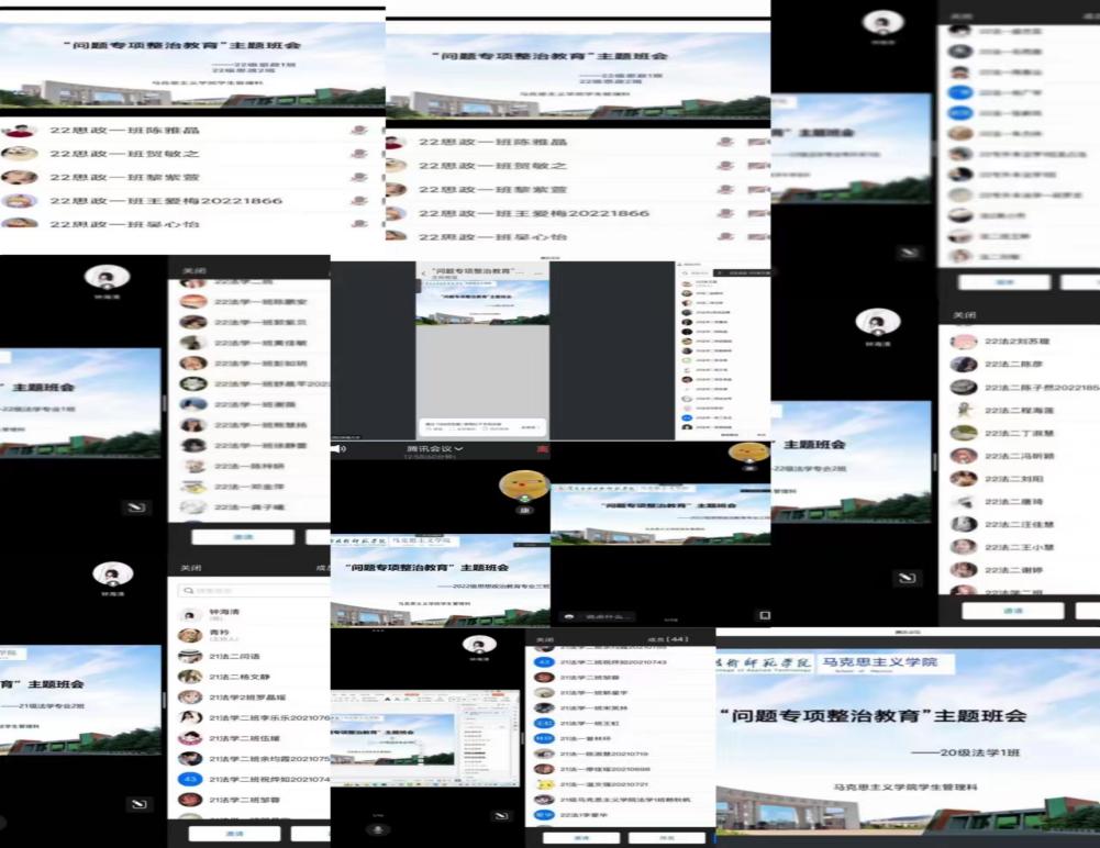 各辅导员以线上PPT讲解的方式向同学们传达了有关政策法规,并积极询问班级同学是否认为学校某些方面存在问题,若存在不足之处,可积极向我院上级反应,解决问题。