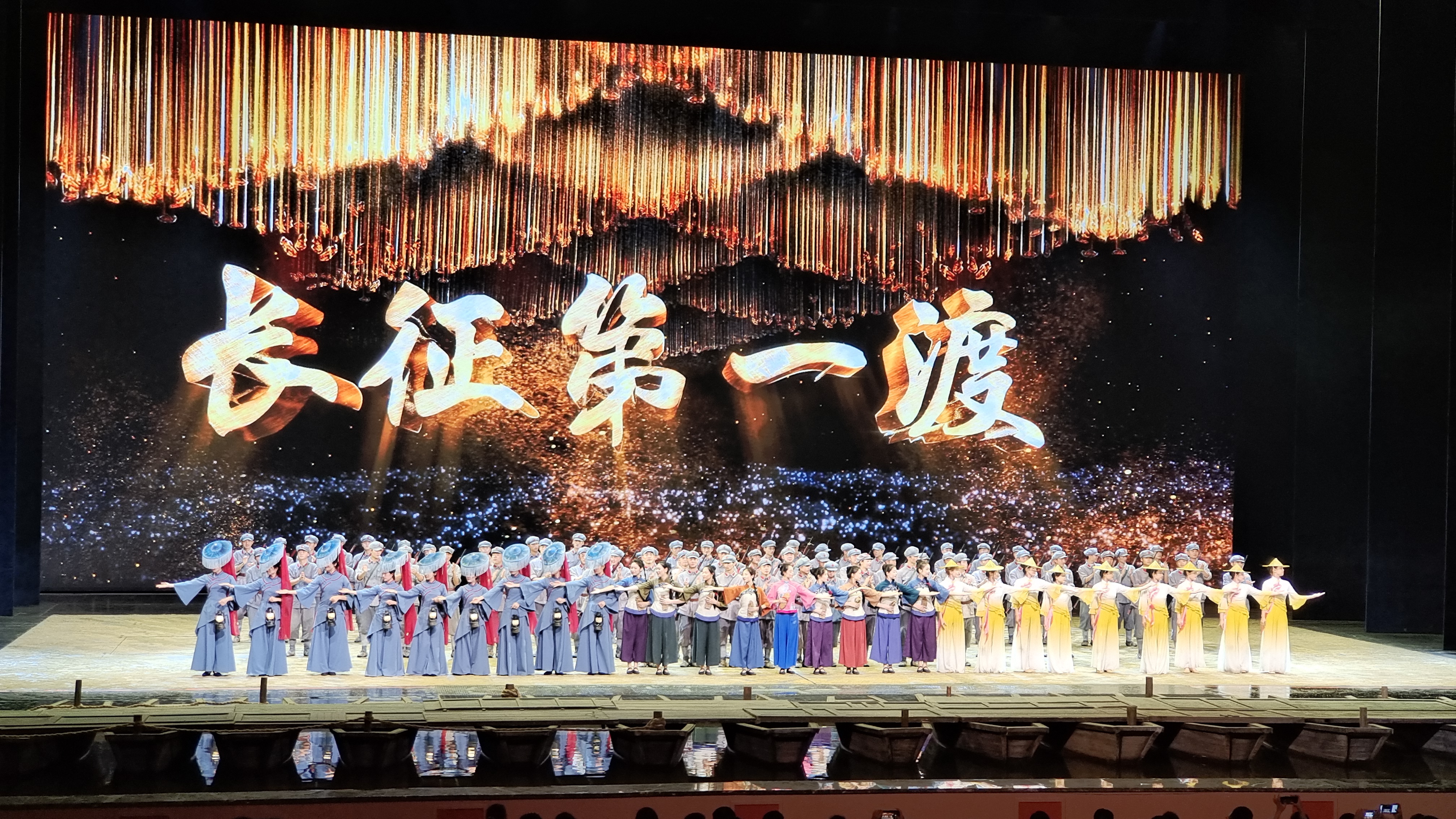 活动第一天,队伍于7月8日晚在长征大剧院观看中国首部大型红色文旅史诗——《长征第一渡》。该舞台剧通过鲜活的人物形象与跌宕起伏的情节真实的再现了中国工农红军长征的艰苦历程,让学生们沉浸式地感受着革命者们百折不挠、勇往直前的长征精神以及人民群众众志成城、奋起反抗的伟大力量。
