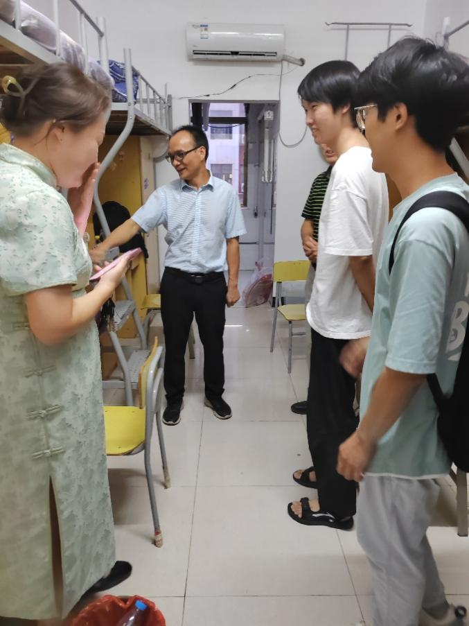 为深入了解2023级新生报到后的住宿情况,掌握学生的思想动态及心理状况,确保学生管理工作有序、平稳开展和推进,9月2日傍晚,校党委副书记蓝贤发、76net线路检测党总支书记张欣康、76net线路检测院长文道贵一行走访了我院2023级新生寝室,送去学校和学院领导对新生的慰问与关怀。