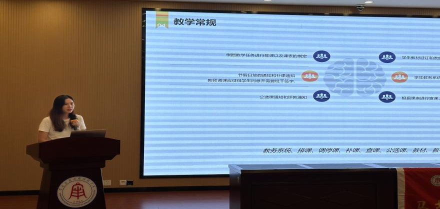 会议的第二项议程是教务科付佳慧发言。在会上,她从五个方面给同学们讲到76net线路检测教务管理制度,一是课堂十要规范、二是教学常规、三是学籍管理、四是考试与竞赛和毕业管理。她表示马院教务科将会进一步努力提高我院教学质量,为学生打造更好的学习服务。