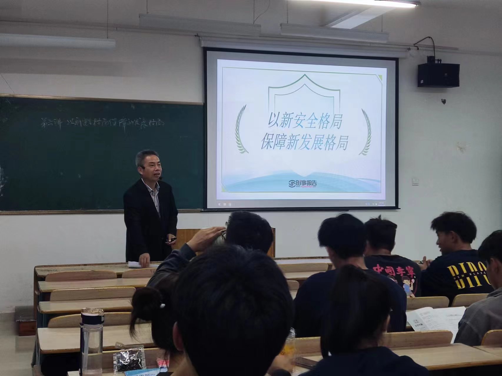 文院长鼓励大学生充分领悟新安全格局对国家发展和个人成长的重大影响,用课堂所学知识服务于社会发展实际需要。课后,同学们表示,对国家、学校和个人的发展有了更明确的认识和更坚定的信心,课堂上与文院长的互动,让同学们领略了文院长深厚的学识含养和丰富的人生智慧,感受了院长的对青年学子的慈爱关怀和殷切期望。