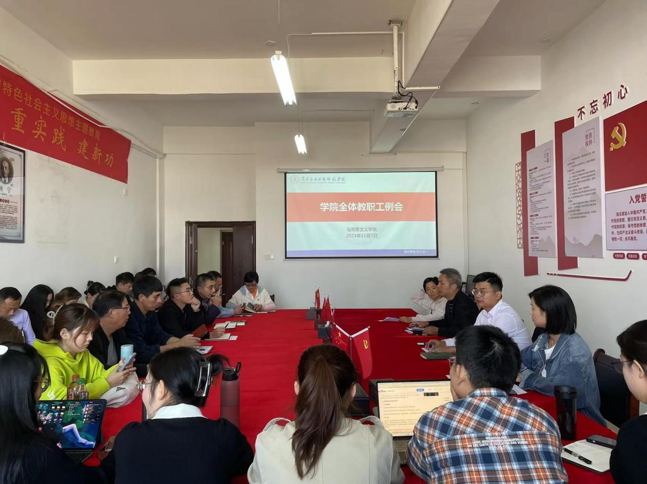 11月7日下午,学院在1511会议室召开了全体教职工工作会议。院长文道贵、党总支书记张欣康、党总支副书记李婷、副院长张丹及全体教职工参加会议,会议由院长文道贵主持。