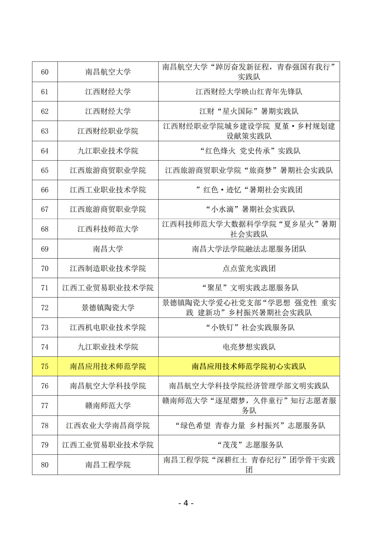 近日,江西省教育厅公布了《“强国有我、青春有为”暑期社会实践活动暨2023年“万名大学生进千站”文明实践志愿服务行动评选结果的公示》。