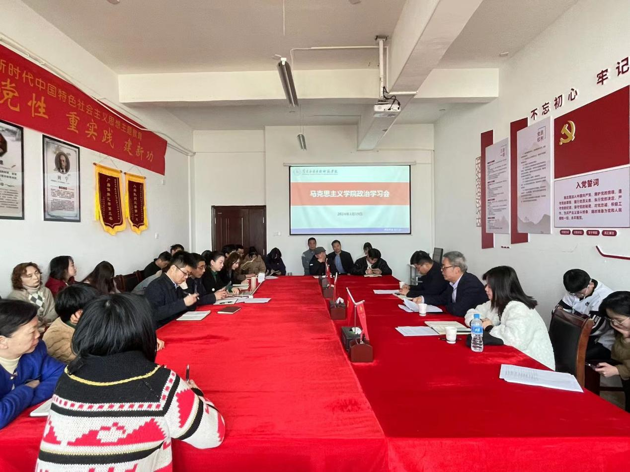 3月19日下午,学院在1511会议室召开政治理论学习会议。院长文道贵,党总支书记张欣康,党总支副书记李婷、及全体教职工参加此次会议,会议由张欣康主持。