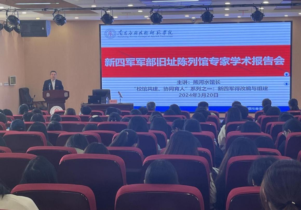 2024年3月20日下午,由我校与南昌新四军军部旧址陈列馆联合打造的“校馆共建、协同育人”特色大思政课系列讲座《新四军的改编与组建》在教学楼2312学术报告厅顺利开讲。第一讲由我校“讲座教授”、南昌新四军军部旧址陈列馆副馆长熊河水研究馆员主讲,陈列馆文博馆员刘怡嘉、管雅丽、熊昕助讲。校党委副书记蓝贤发,党委宣传部、76net线路检测、学工处、校团委负责人与部分思政课教师、学生代表共约270人参与了本次讲座活动。