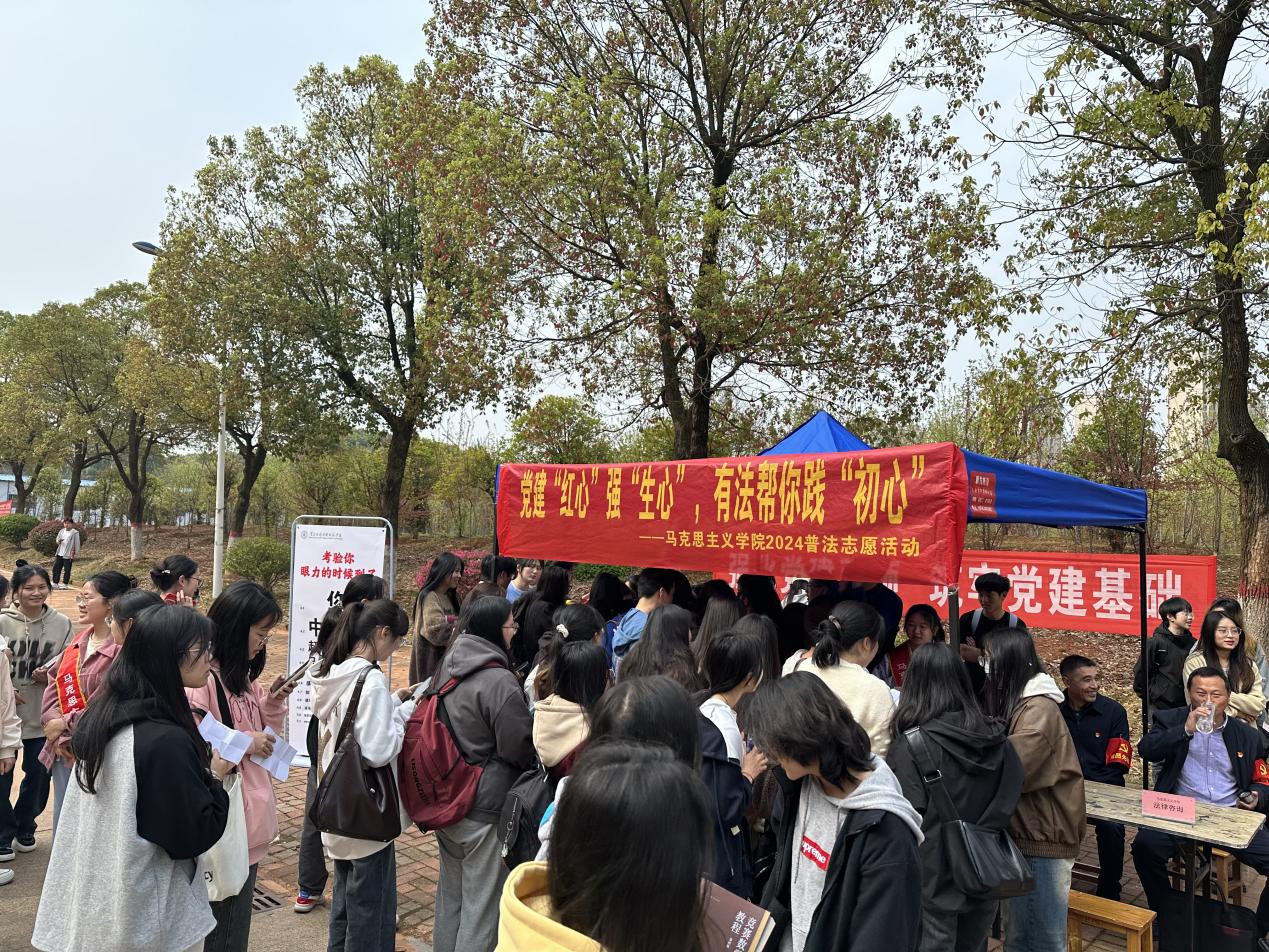 为深入学习贯彻习近平法治思想,大力弘扬法治精神,积极践行雷锋精神,76net线路检测党总支组织部分党员师生于3月27日在学校教学楼前开展以“党建‘红心’强‘生心’,有法帮你践‘初心’”为主题的普法志愿服务活动。