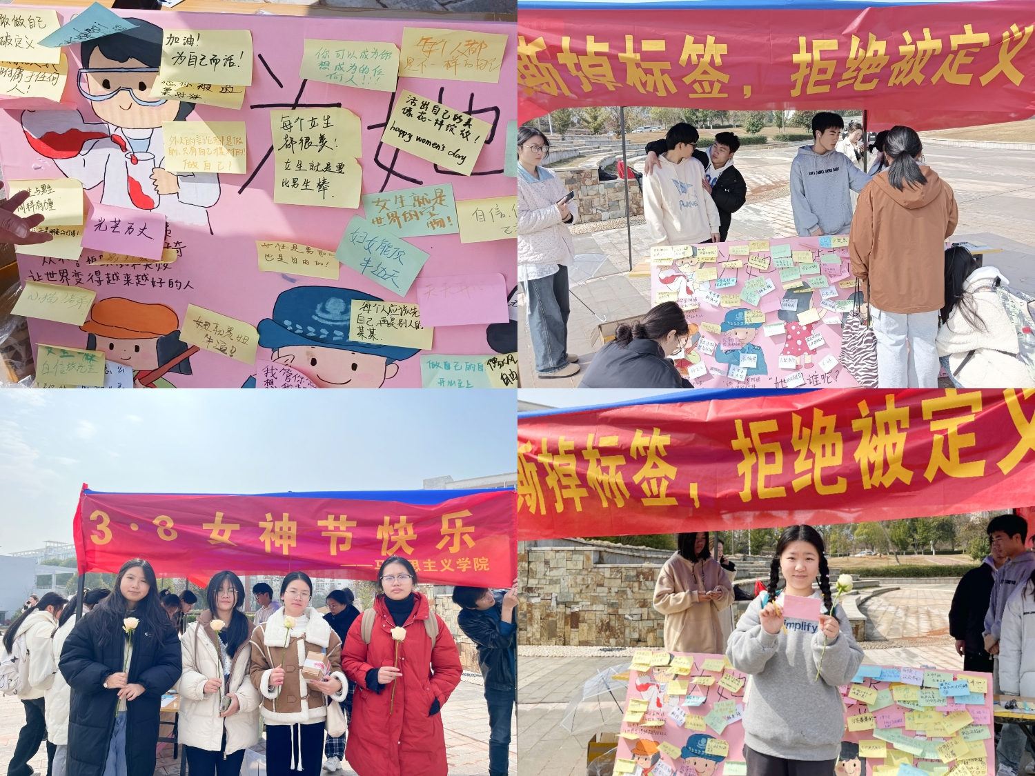 “东海随春归,发我枝上花”。在这个春意盎然的时节,“三八”国际妇女节踏着春风翩然而至,为丰富我校同学文化生活,让“她”的力量在家园文化建设中焕发光彩,发展独立自主不被时代定义的新时代女性,让女性追求更美好的自己,2024年3月8日76net线路检测在学校世纪广场开展了“撕掉标签,拒绝被定义”的活动,向全体教职工女性和女同学致以节日的祝贺和美好的祝福。