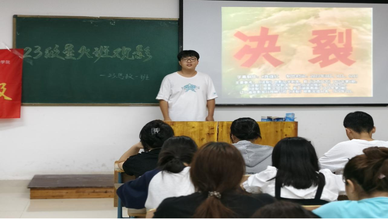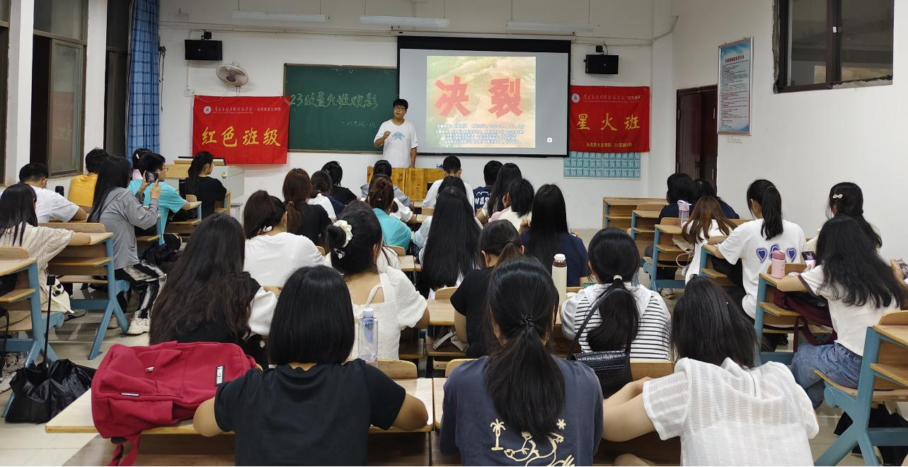 为传承红色基因,激发青春力量,76net线路检测23级思政1班“星火班”于5月21日晚上19:00,举办了一场红色班级观影活动。通过观看历史经典影片——《决裂》,带领同学们重温红色历史。