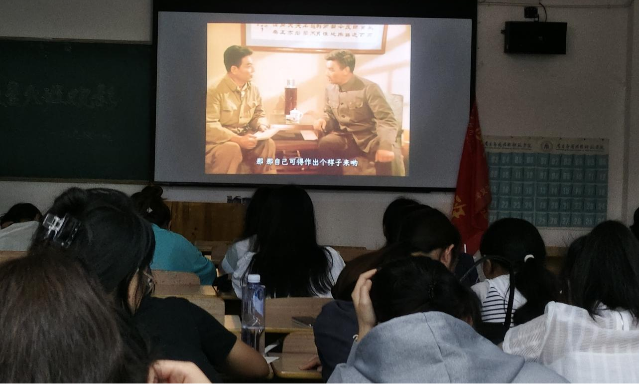 观影前,由胡书源同学为本次观影活动做影片导入,谈到我们要和资产阶级走资派决裂,而不是强调个人努力来走金字塔路线,我们应当集体奋斗进行伟大的革命 ,建立无产阶级真正良好的革命事业的接班人,并呼吁道“要做毛主席的战士、做毛泽东思想的遗产继承人,做习总书记的战士,高举中国特色社会主义伟大旗帜”,令同学们感触颇深。