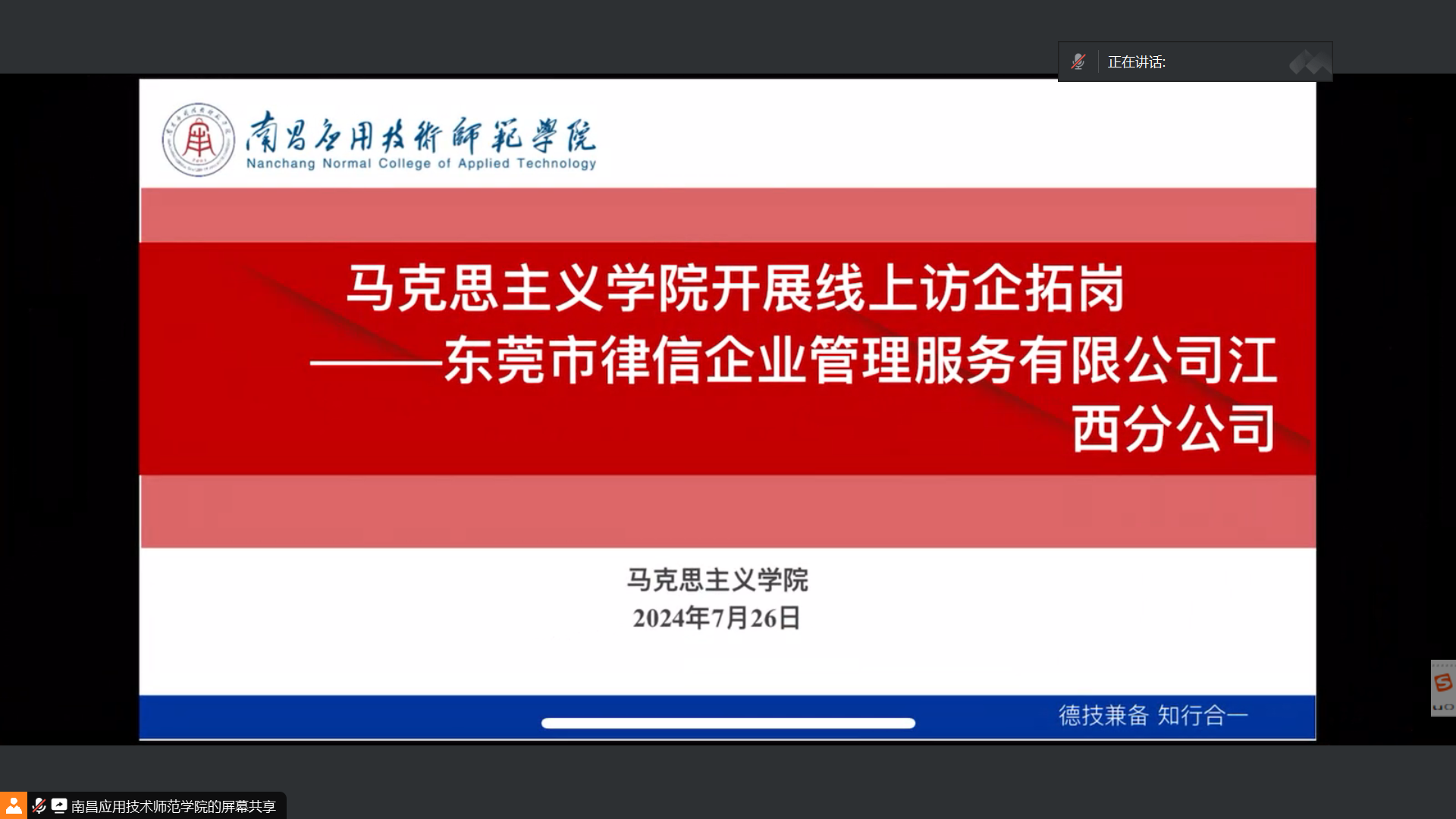 为进一步拓宽毕业生就业渠道,加强校企合作,促进学生高质量就业,76net线路检测于2024年7月26日通过视频会议的方式与东莞市律信企业管理服务有限公司江西分公司开展了线上访企拓岗活动。