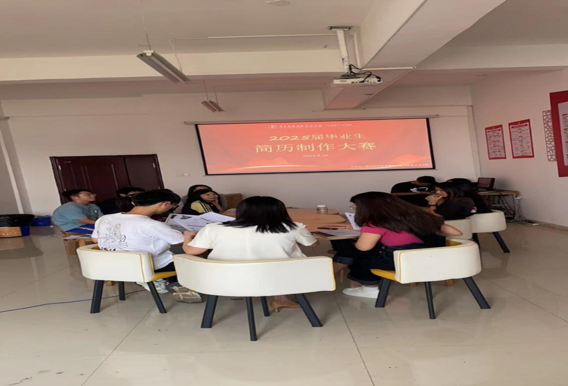 为助力2025届毕业生更好地应对就业市场的挑战,我院于2024年9月24日在九龙湖校区1511教室成功举办2025届毕业生简历制作大赛。党总支副书记李婷、毕业班辅导员陈伟辉、汤益尊出席此次活动,活动由就业专员朱文清主持。
