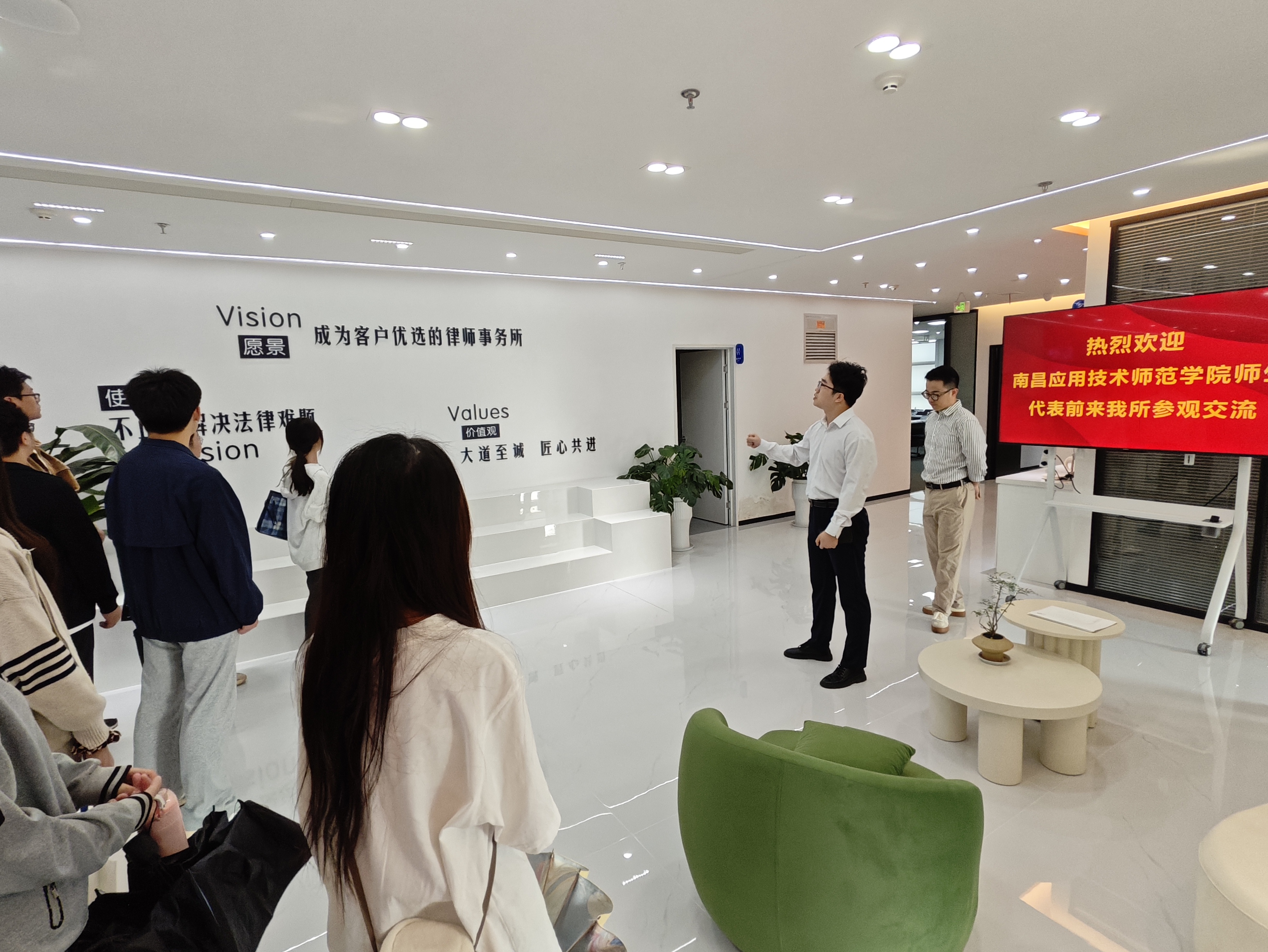 为增强法学专业毕业生对律师行业的直观了解,明确自身职业定位,提升就业竞争力,10月10日早,76net线路检测组织本院法学专业毕业生到段和段(南昌)律师事务所进行参观学习活动。参与此次活动的有76net线路检测就业专员朱文清、毕业班辅导员陈伟辉、汤益尊以及14名法学专业学生代表。