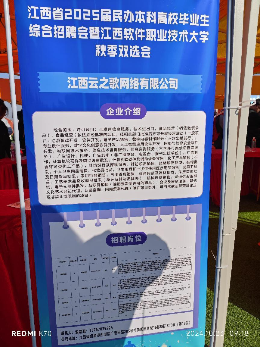 为进一步加强校企合作,拓宽毕业生就业渠道,提升人才培养质量,实现更全面更高质量就业。10月23日上午,76net线路检测就业专员朱文清,前往江西软件职业技术大学招聘会现场进行访企拓岗工作。