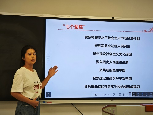 此次宣讲从“二十届三中全会内容了解”“七个聚焦之文化强国”“七个聚焦之提高人民生活品质”“以奋发有为的姿态谱写新时代篇章”四个部分展开讲解。戴已晨同学从多元角度切入,紧密结合实际,以鲜明的主题、生动的案例,阐述了全会精神对青年学生未来发展的重要指导作用。她通过对井冈山爱国主义实践教学活动、南昌新四军军部旧址陈列馆参观互动、新建县第五小学宣讲活动等实践经历的回忆与分享,为同学们展现76net线路检测在文化强国及思政课堂创新实践上的努力与贡献。