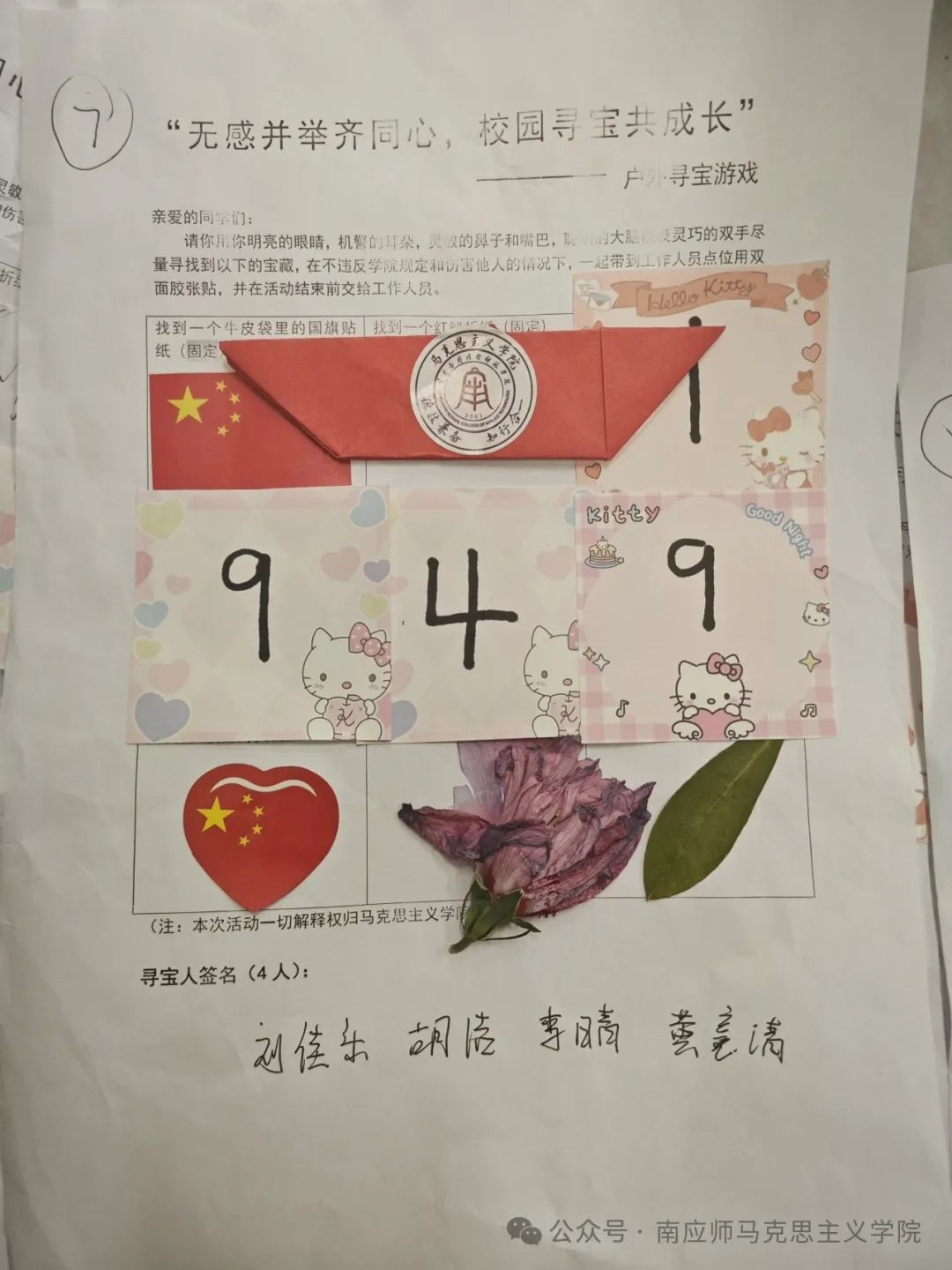 同学们互帮互助,共同协作,在不懈努力下寻找到了被藏匿的宝物,充分发挥自己的五感发现了校园的美好。
