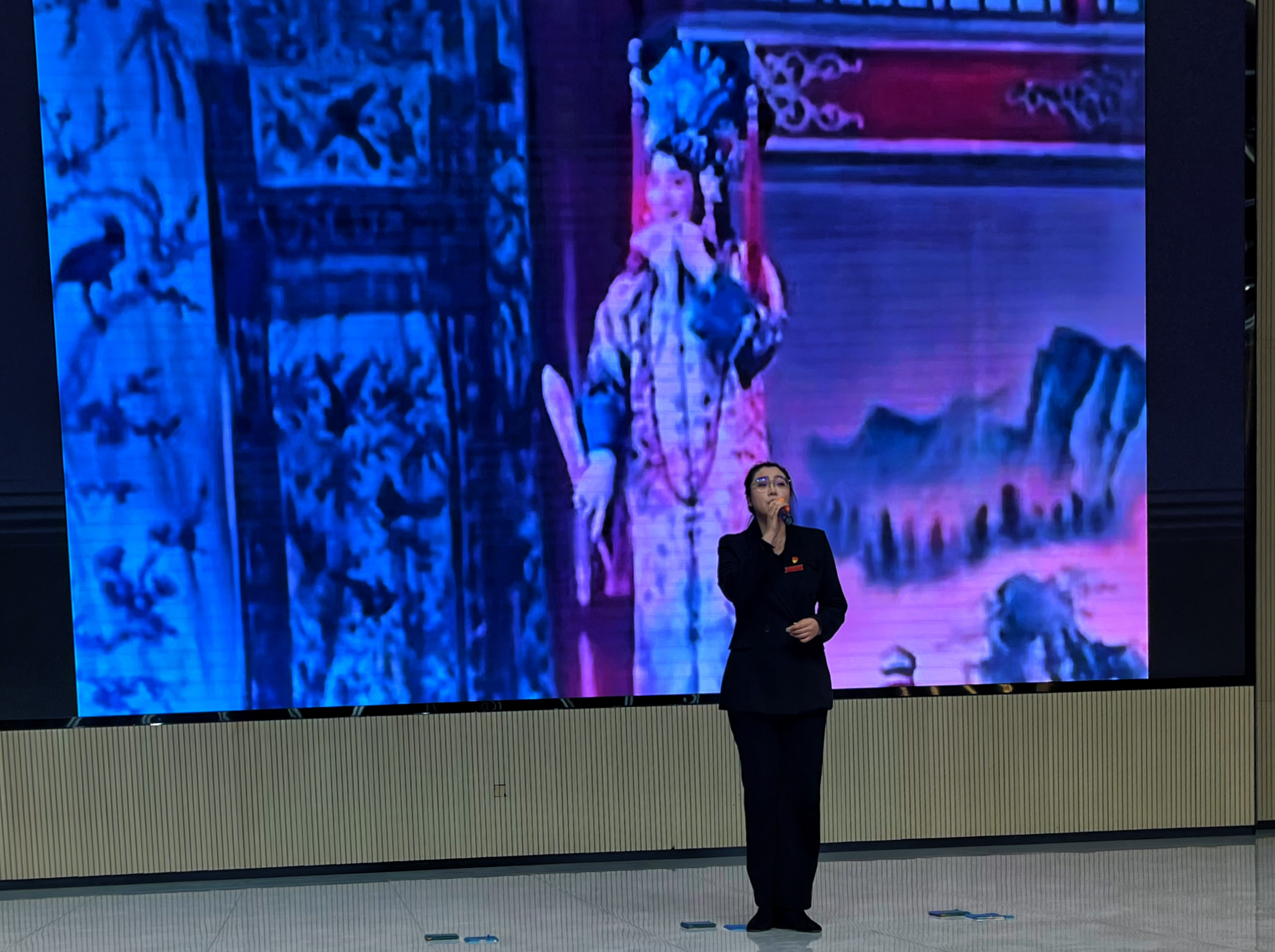 比赛现场,吴昱杉选手以铿锵之声,深情讲述了艺术大师梅兰芳在抗战期间的英勇事迹。她通过生动的演绎,让我们见证了梅兰芳先生以艺术家之姿,毅然蓄须明志,坚决抵制日寇,毅然泪别舞台,誓不向侵略者折腰的崇高气节。