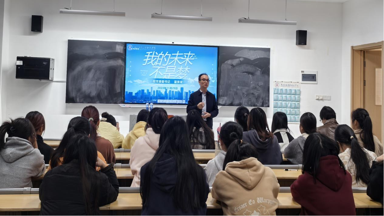 为帮助同学们进一步明确树立人生目标,锚定理想彼岸,增强学习动力,以不懈奋斗的姿态迈步人生道路。2024年11月29日下午,校党委副书记蓝贤发以“我的未来不是梦”为主题,在沁苑2教B座101教室给23级思政1班全体同学们开展了一场别开生面的主题班会。