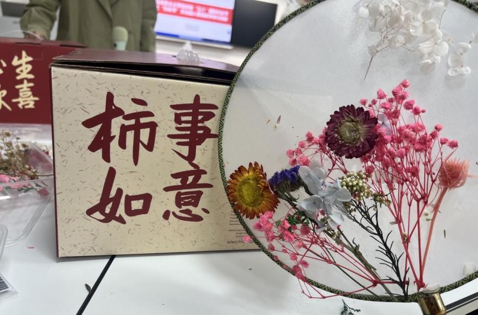 随后,女教职工们围在一起制作手工团扇,她们发挥个人创意,精心搭配花材,将普通花材粘贴在扇面上,从而变成一件件独具匠心的作品,每一件都饱含着她们对美的理解。