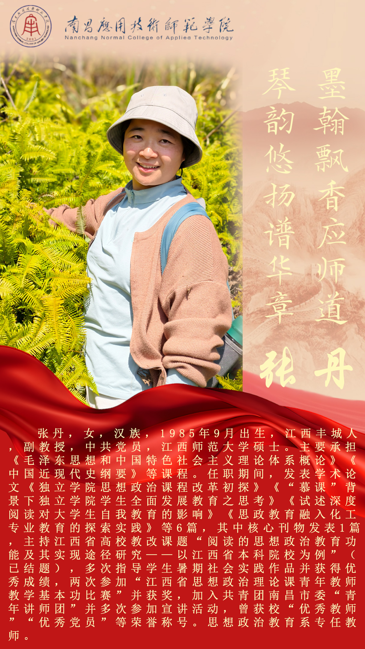 先进典型 优秀毕业生 优秀在校生 优秀教职工 您现在的位置是:首页 > 先进典型 > 优秀教职工 张丹 副教授 综合办2025-04-021498 上一篇 桂光泽 副教授 下一篇 敬业育人 默默奉献|优秀教师刘德彰