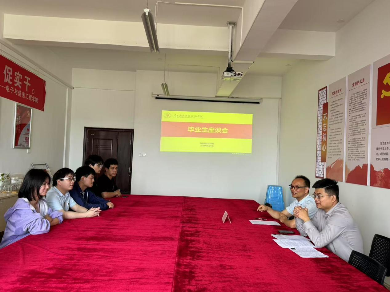 为深入了解毕业生需求,推进实现更高质量就业,5月9日,76net线路检测召开2025届毕业生座谈会。校党委副书记蓝贤发出席会议并讲话,学院党总支书记张欣康以及2025届毕业生代表参加。