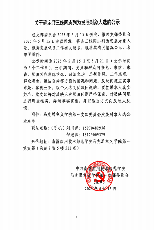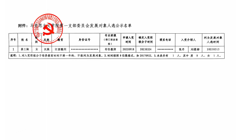 党建活动 组织发展 党总支概况 党建工作 您现在的位置是:首页 > 党建活动 > 党建工作 关于确定龚三妹同志列为发展对象人选的公示 党政办2025-05-151340 上一篇 关于将吴克坤等8位同志列为发展对象人选的公示 下一篇 学院召开党总支理论学习中心组(扩大)学习会议