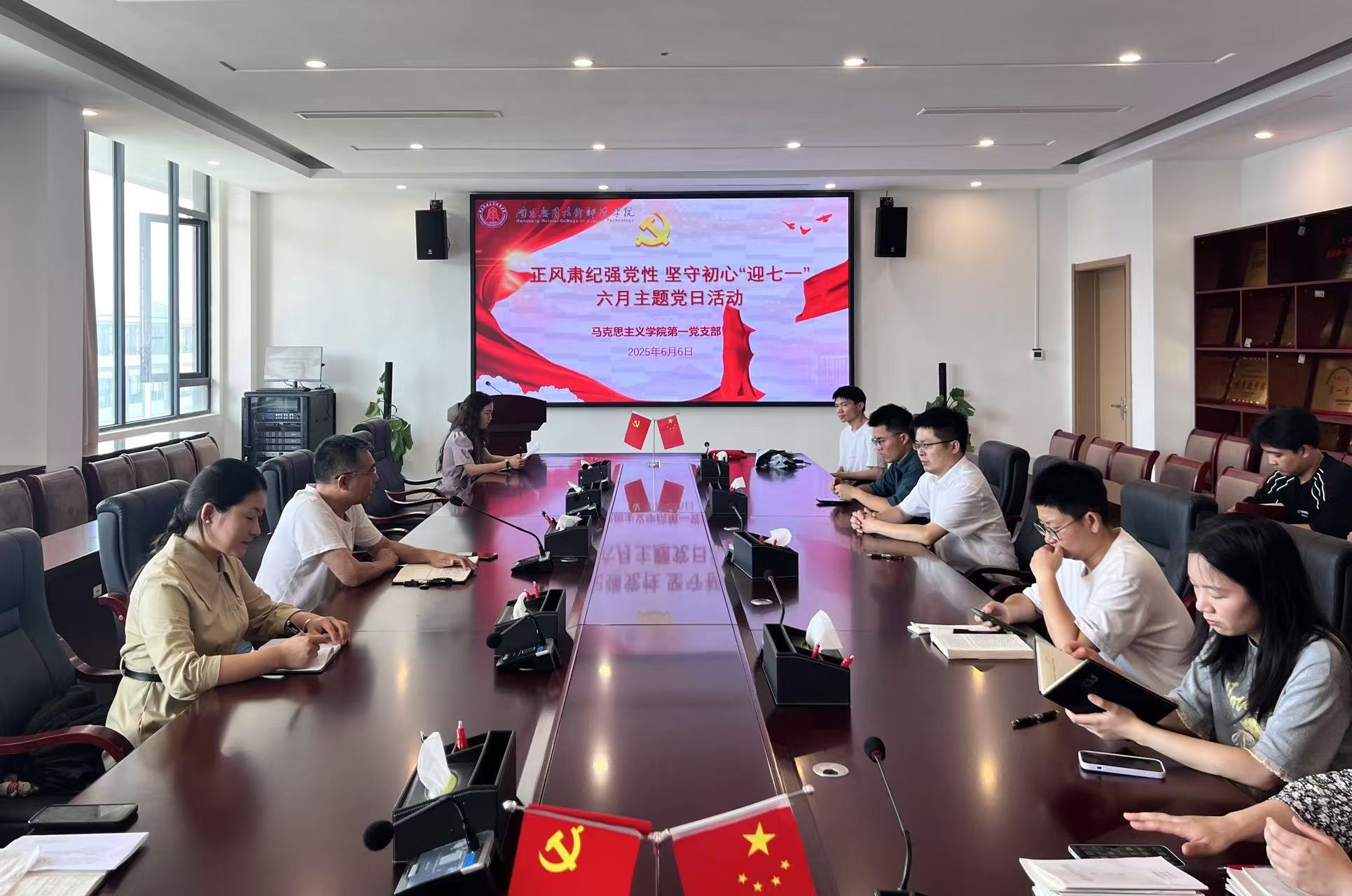 为深入贯彻全面从严治党要求,以优良作风迎接党的生日,6月6日,76net线路检测第一党支部在沁苑7实506会议室开展“正风肃纪强党性,坚守初心‘迎七一’”六月主题党日活动。此次活动由党支部副书记邹颖主持,全体党员参与。