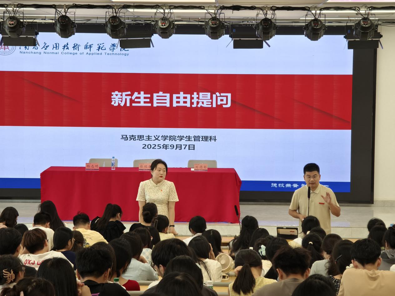 在互动答疑环节,同学们踊跃发言,现场氛围热烈融洽。同学们围绕学业规划、专业技术资格证书(职业资格证书)考试、校园环境、基础设施安排等普遍关注的问题展开交流。与会领导和教师逐一给予了耐心、细致的解答。