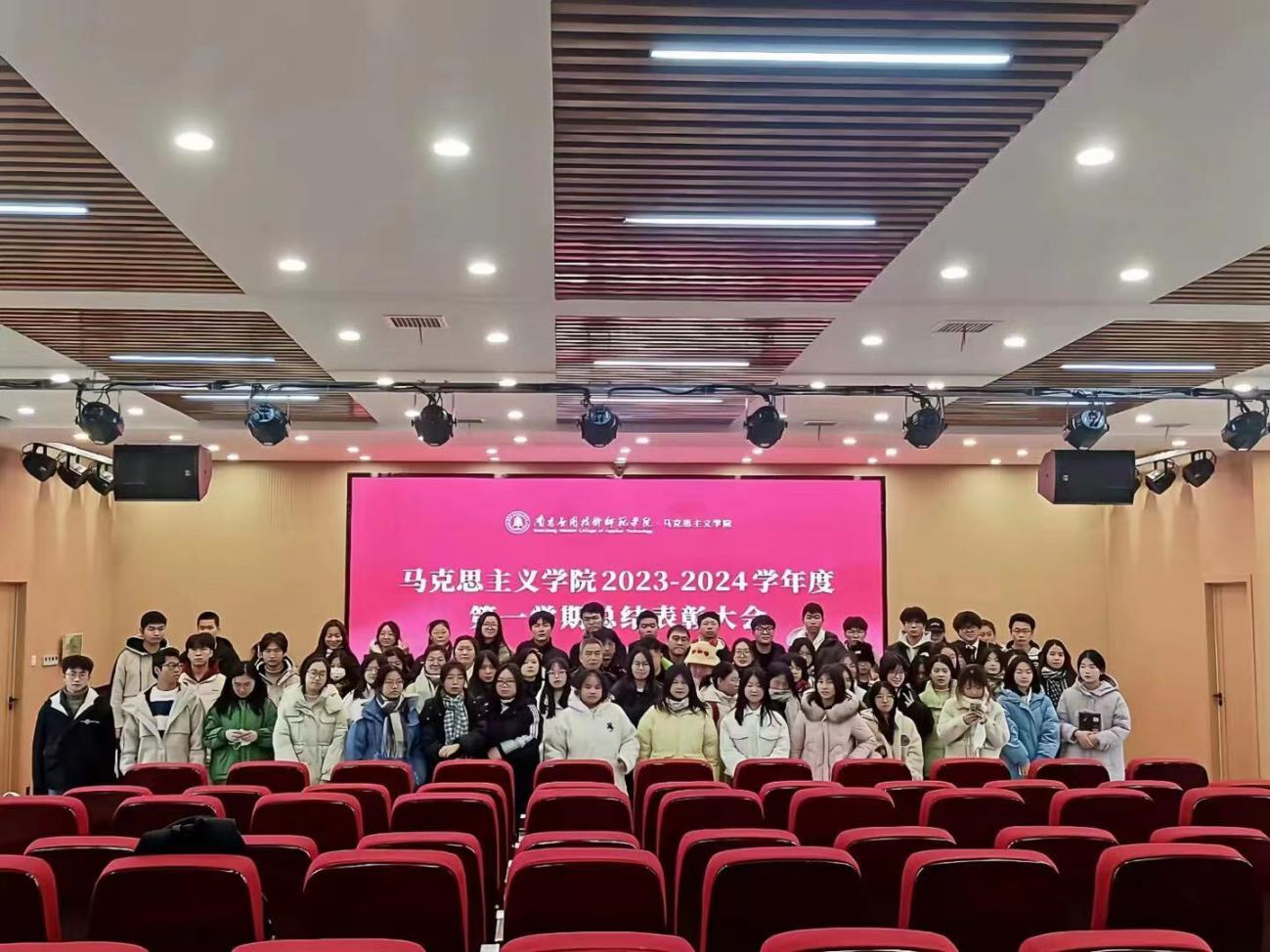 为激励学生诚笃勤勉、知行合一,努力取得更好的成绩,76net线路检测于2023年12月19日在教学楼2312教室召开2023-2024学年度第一学期总结表彰大会,对本学期表现突出的先进集体(团队)和优秀个人予以表彰。76net线路检测院长文道贵、党总支书记张欣康、党总支副书记李婷、学生科科长康柠出席大会,并为获奖集体代表和师生颁奖。本次大会由团委老师胡琛主持,获奖学生代表及76net线路检测团总支第二届学生会全体成员参加大会。